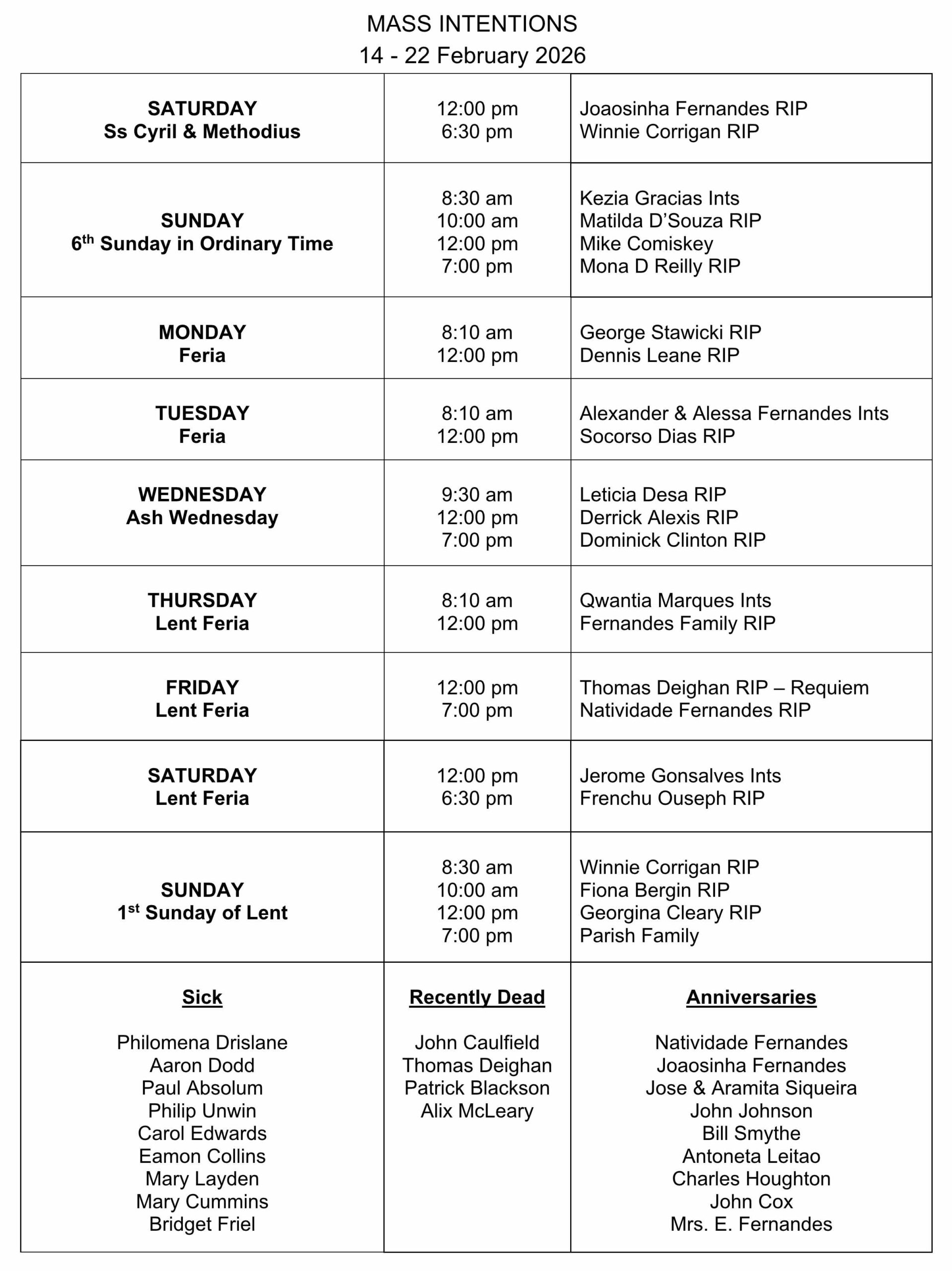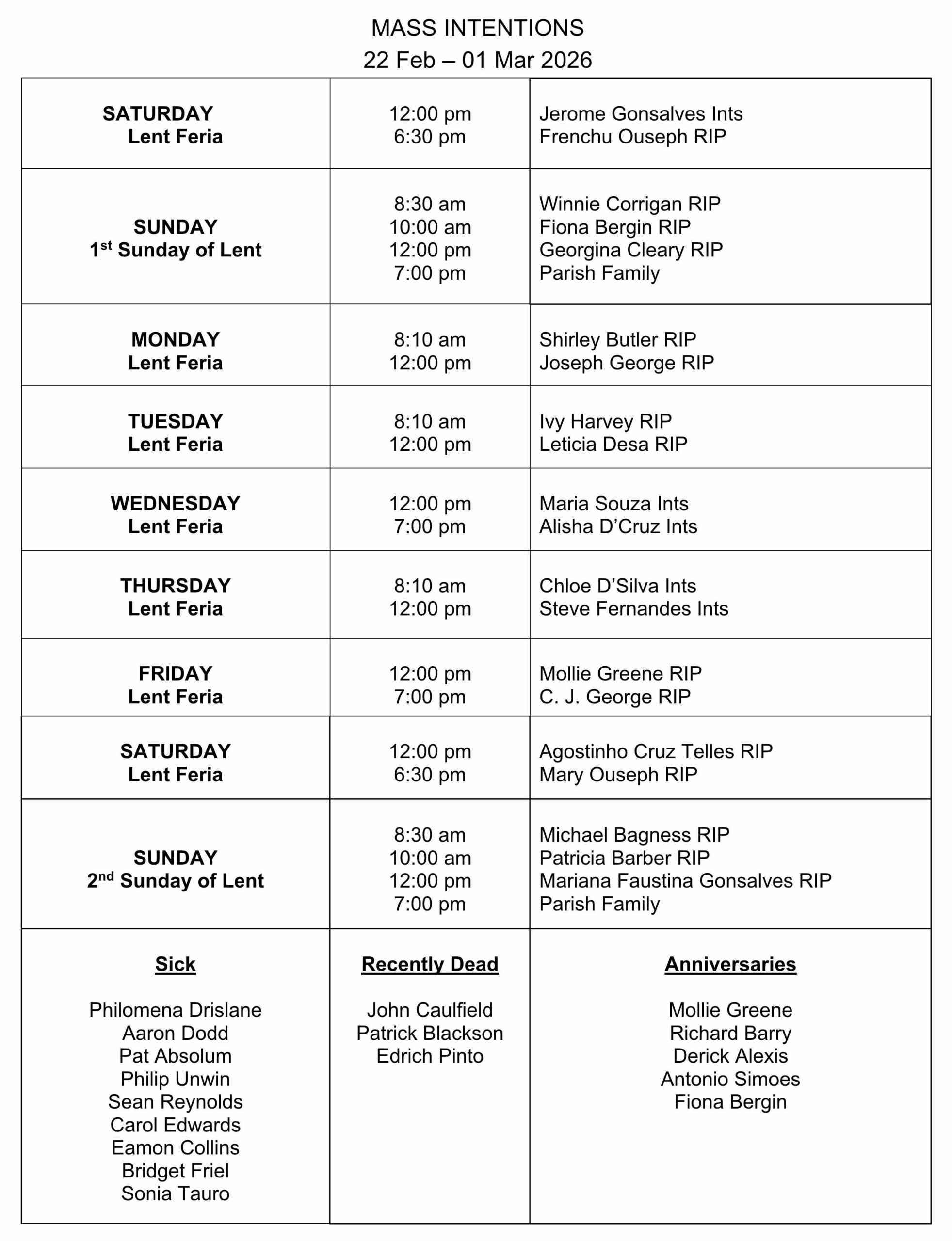 1st Thursday of every month Konkani Mass at 6:00 pm