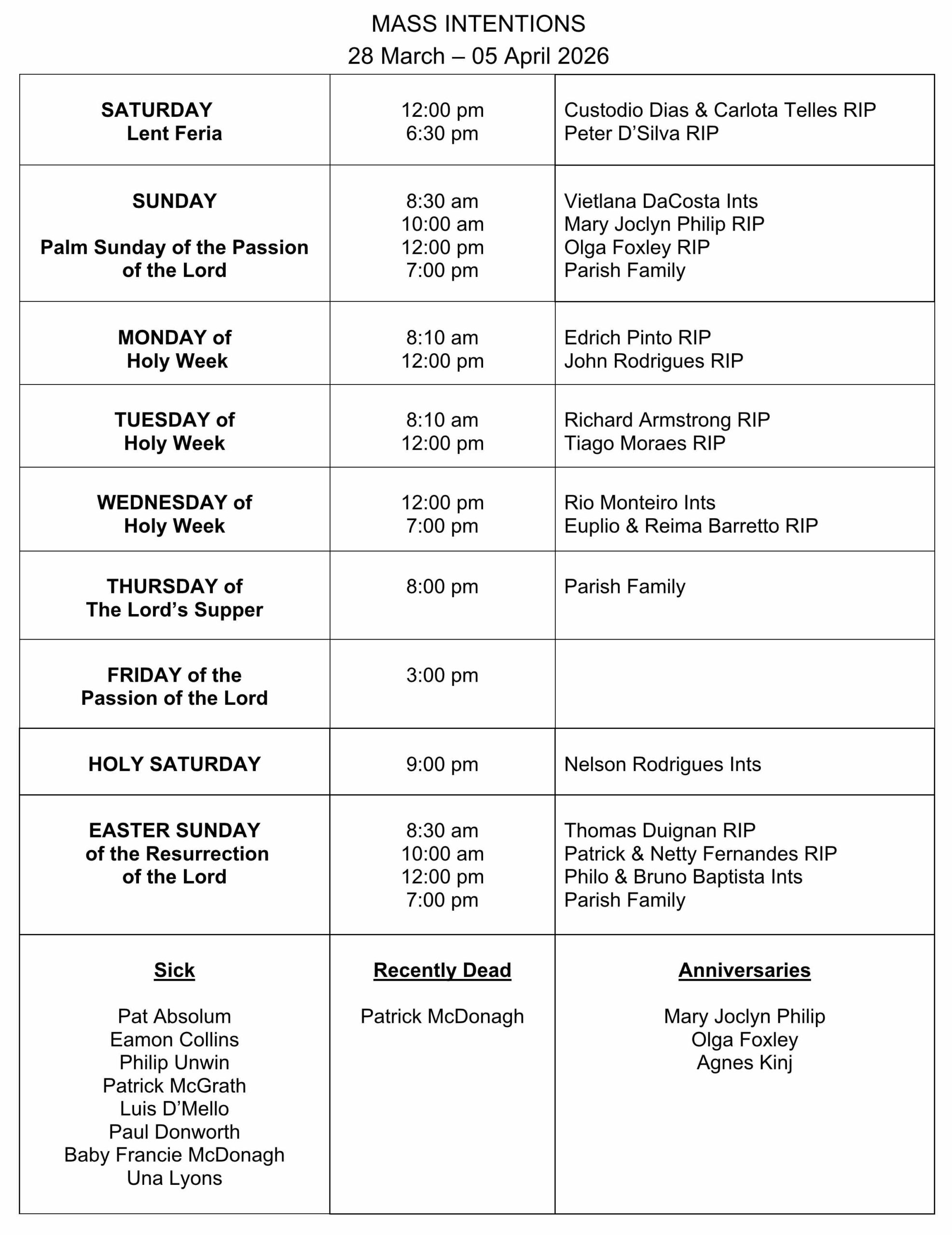 12apr10:00 am11:00 am10:00 am - Sunday Mass10:00 am - 11:00 am